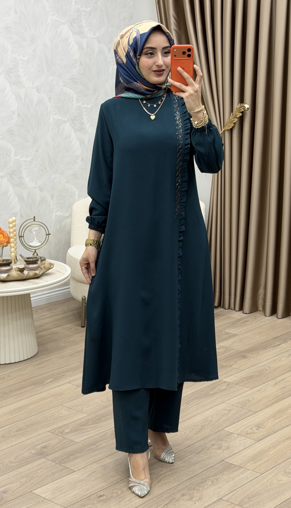 Nevin Takım,hem iş hem de günlük hayatınızda rahatlıkla tercih edebileceğiniz çok yönlü bir parçadır. Şıklığı konforla buluşturan bu tasarım, sezonun en gözde modellerinden biri olacak