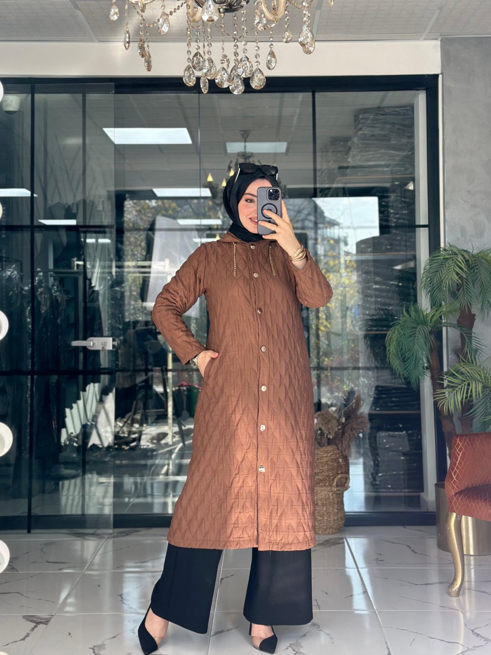 Kumaşı kapitonedir. Cepleri mevcuttur. Önü düğmelidir. Kapüşonu çıkmaz.