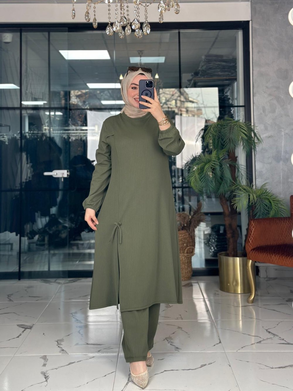 Kumaşı örmedir. Pantolon beli lastiklidir.