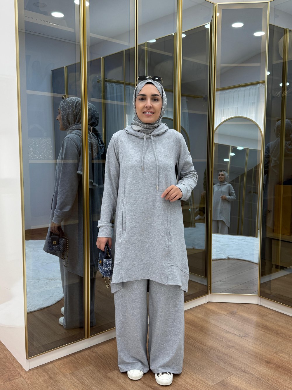 Önü Kısa Arkası Uzun İki İplik Takım Gri Melanj