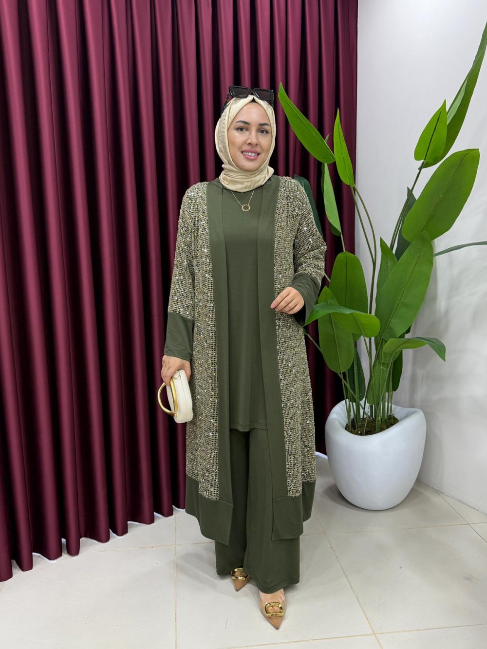 Payetli Hırkalı Takım Haki