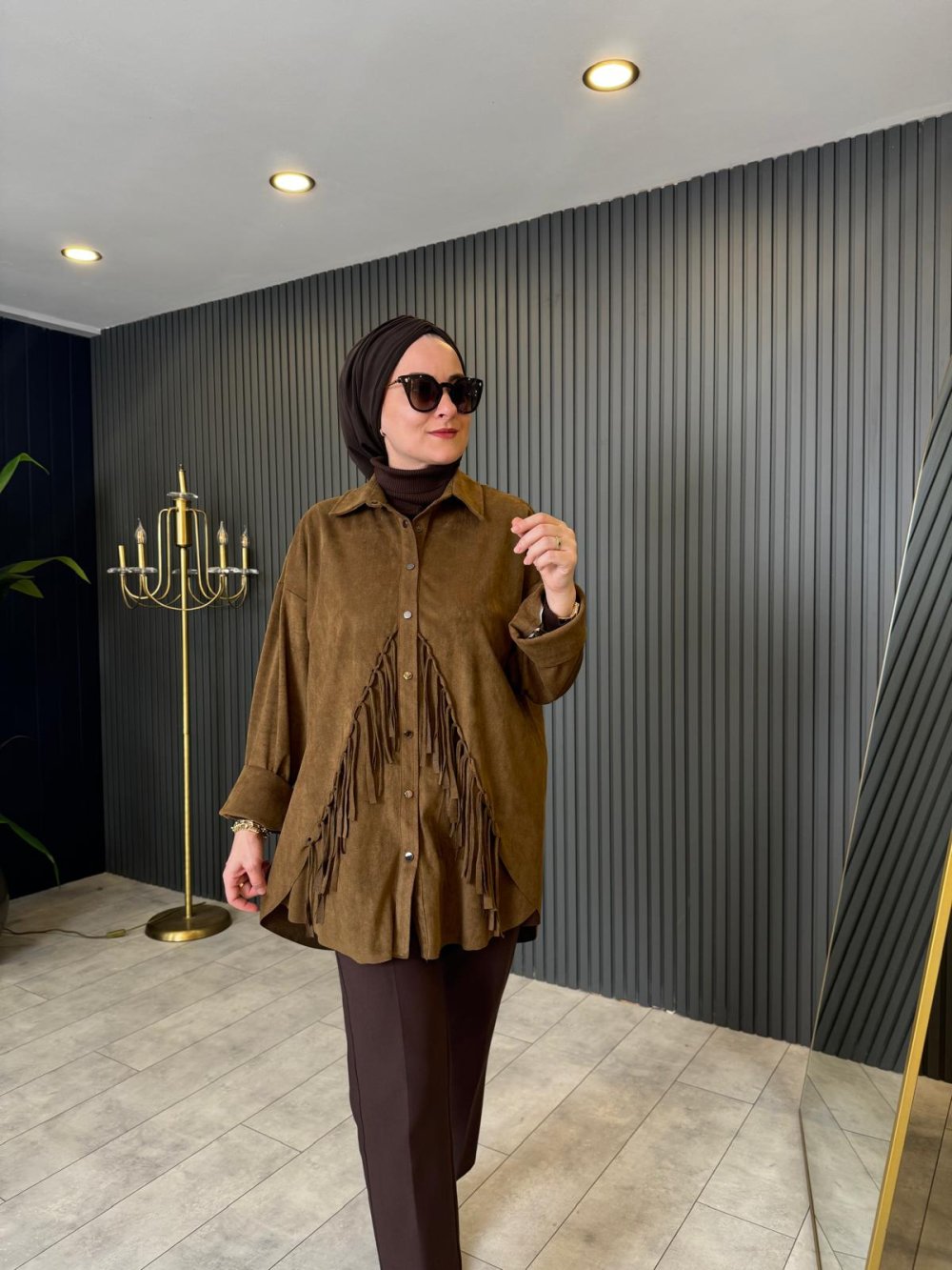 Püsküllü Süet Gömlek