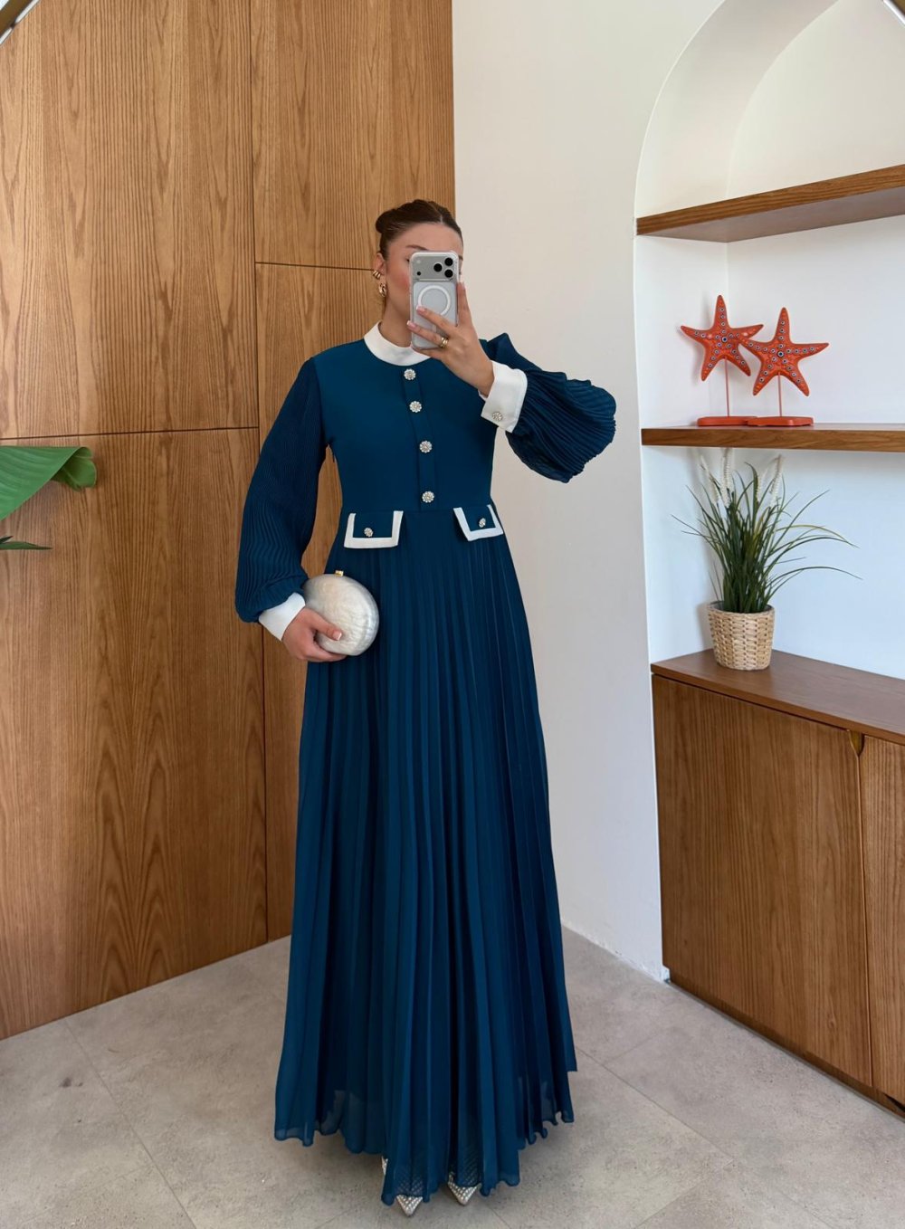 Rukiye Elbise Petrol Mavisi