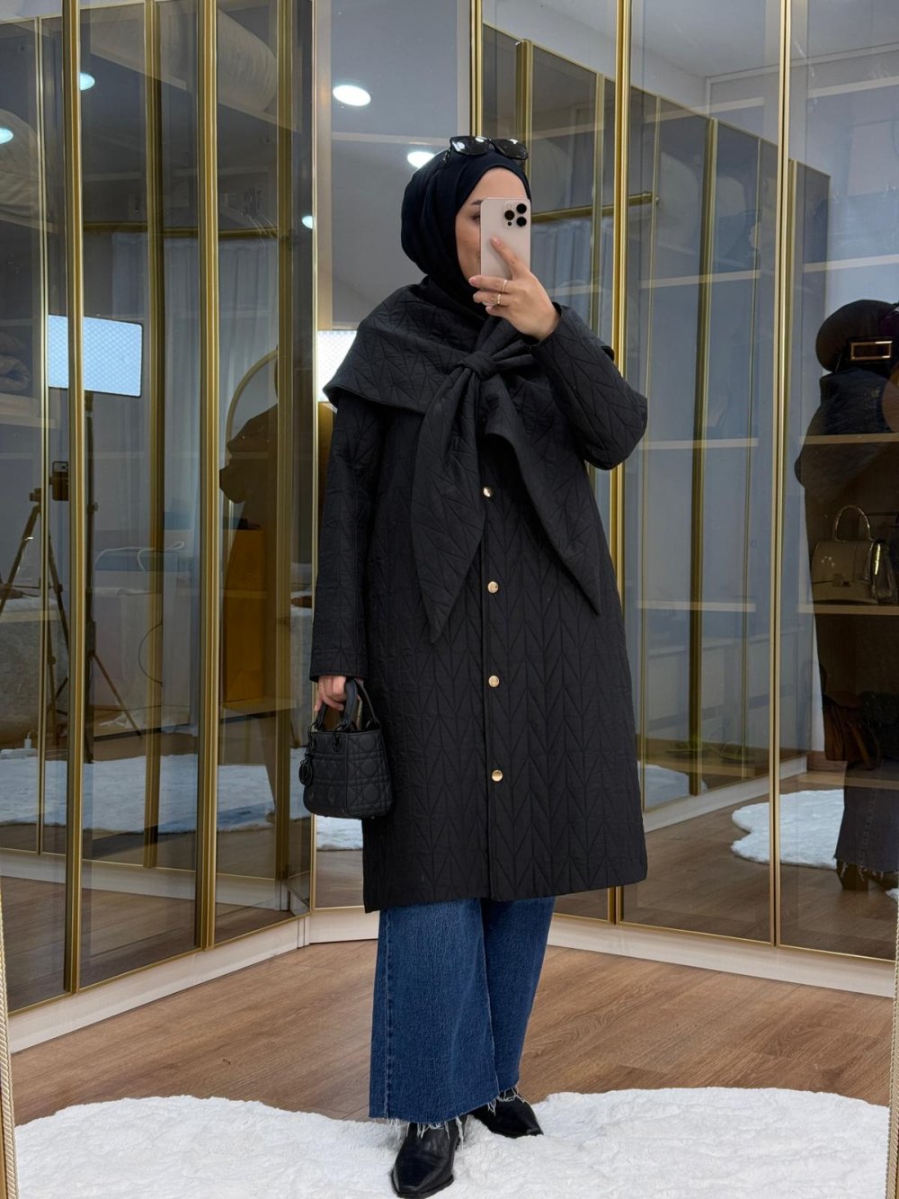 •  şal detaylı kapitone mont  •