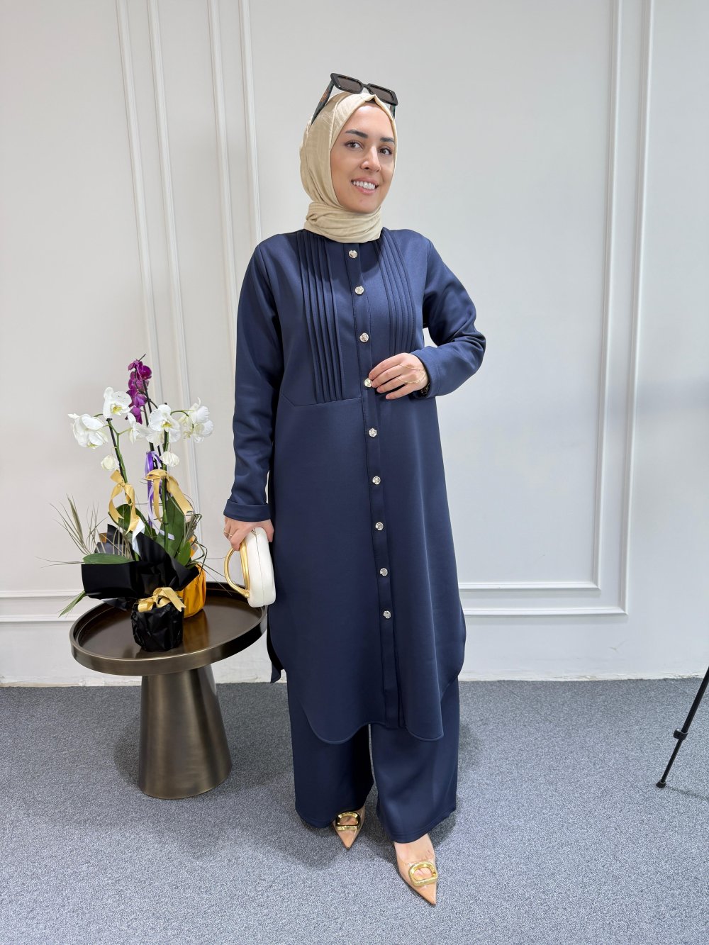 Tunik boy 115 cm’dir. Önünde gold düğme ve nervürü bulunmaktadır.