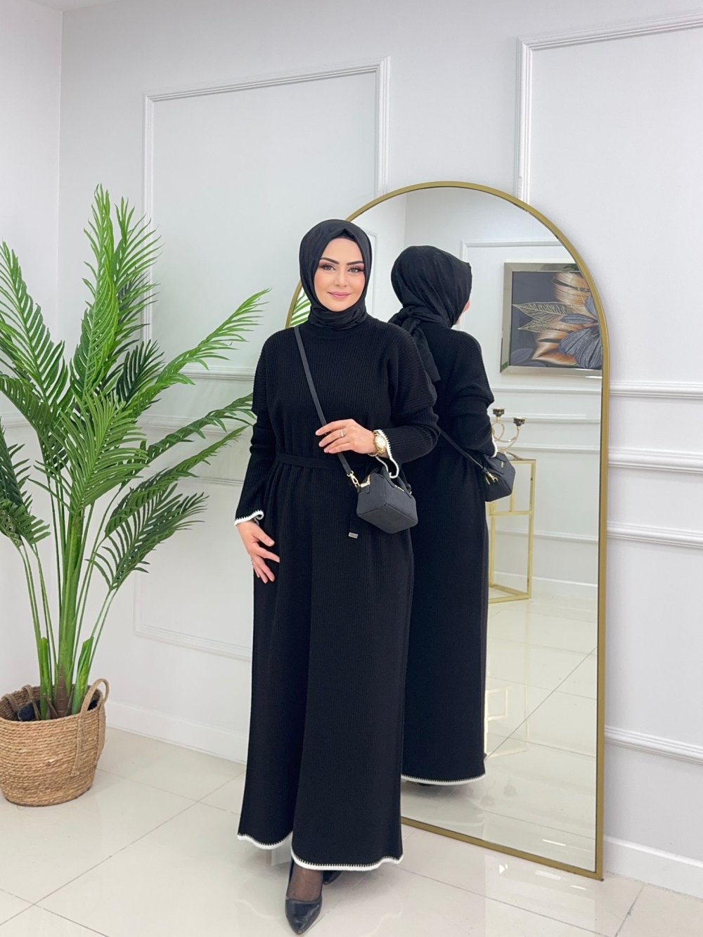 SELVİ TRİKO ELBİSE-SİYAH Siyah