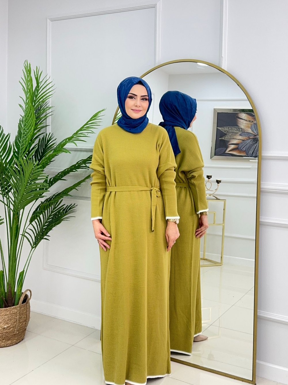 SELVİ TRİKO ELBİSE-YAĞ YEŞİLİ Yağ Yeşili