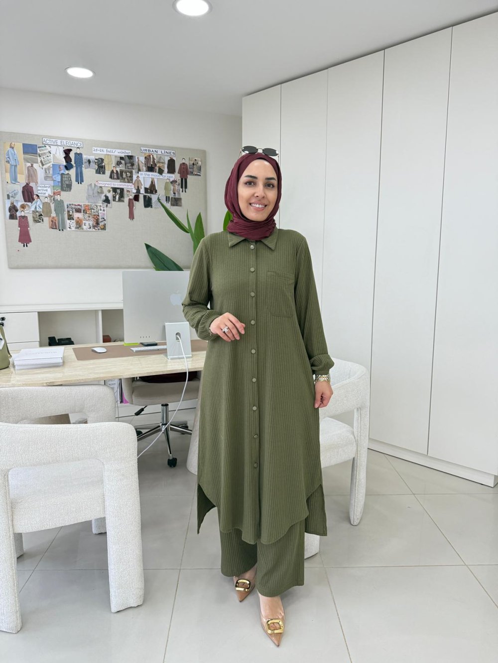 Tunik ön boy 115 cm, arka boy 120 cm’dir.