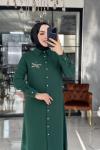 Kumaş Kumlu Kreptir. Boydan düğmelidir.Göğüs işlemelidir.