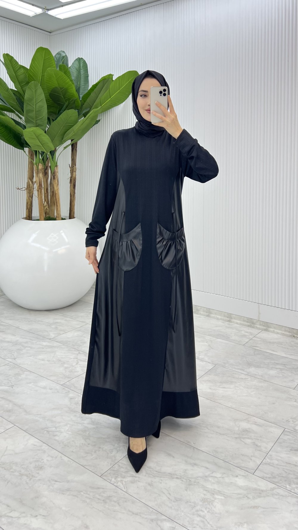 Siyah Aysa Deri Cepli Elbise Tesettür Giyim