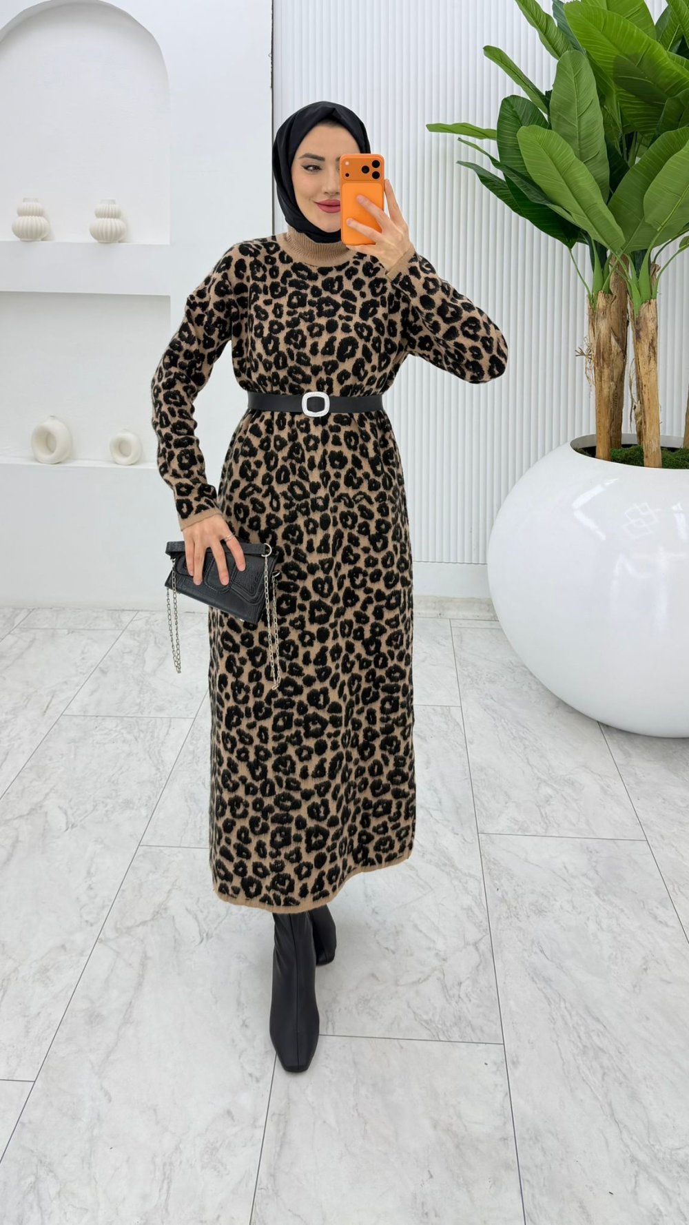 LEOPAR YÜN EFEKT TRİKO ELBİSE