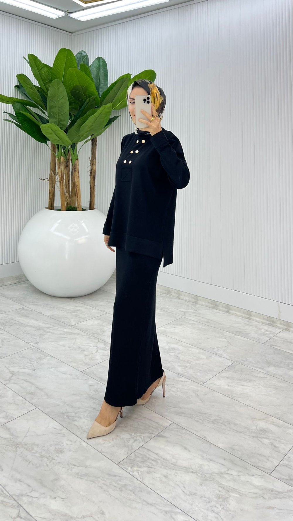 Siyah Premium Asiye Triko Etek Takım