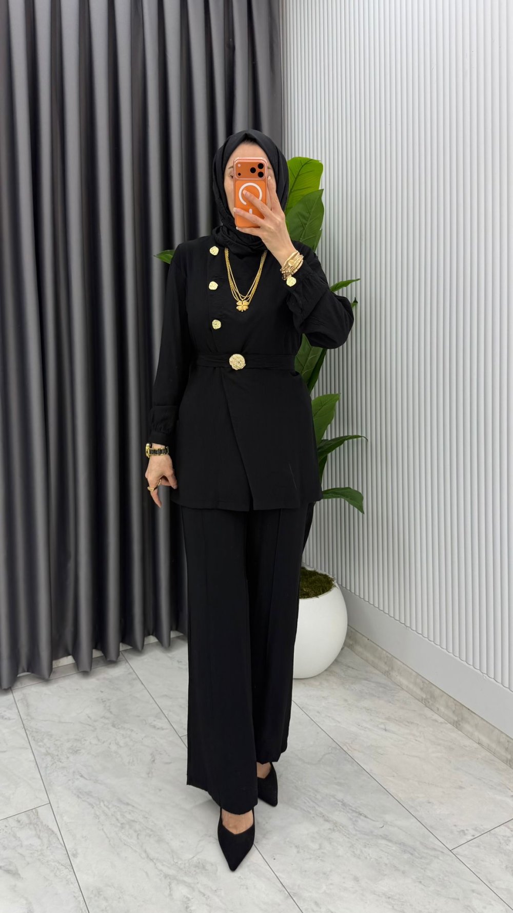 Siyah Premium Kemerli Gözde Takım Tesettür Giyim