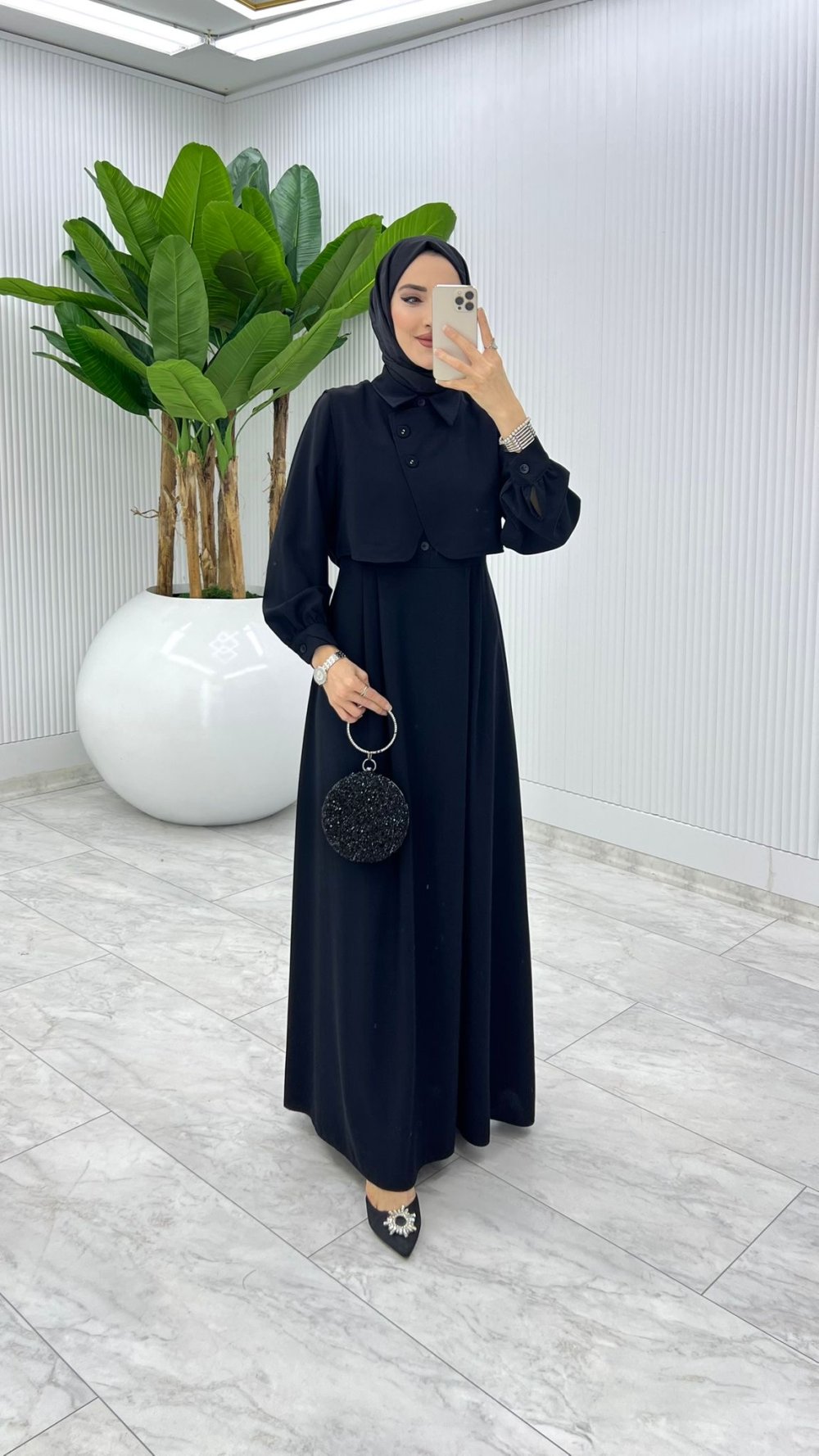 Siyah Sevgi Yelekli Elbise Takım Tesettür Giyim