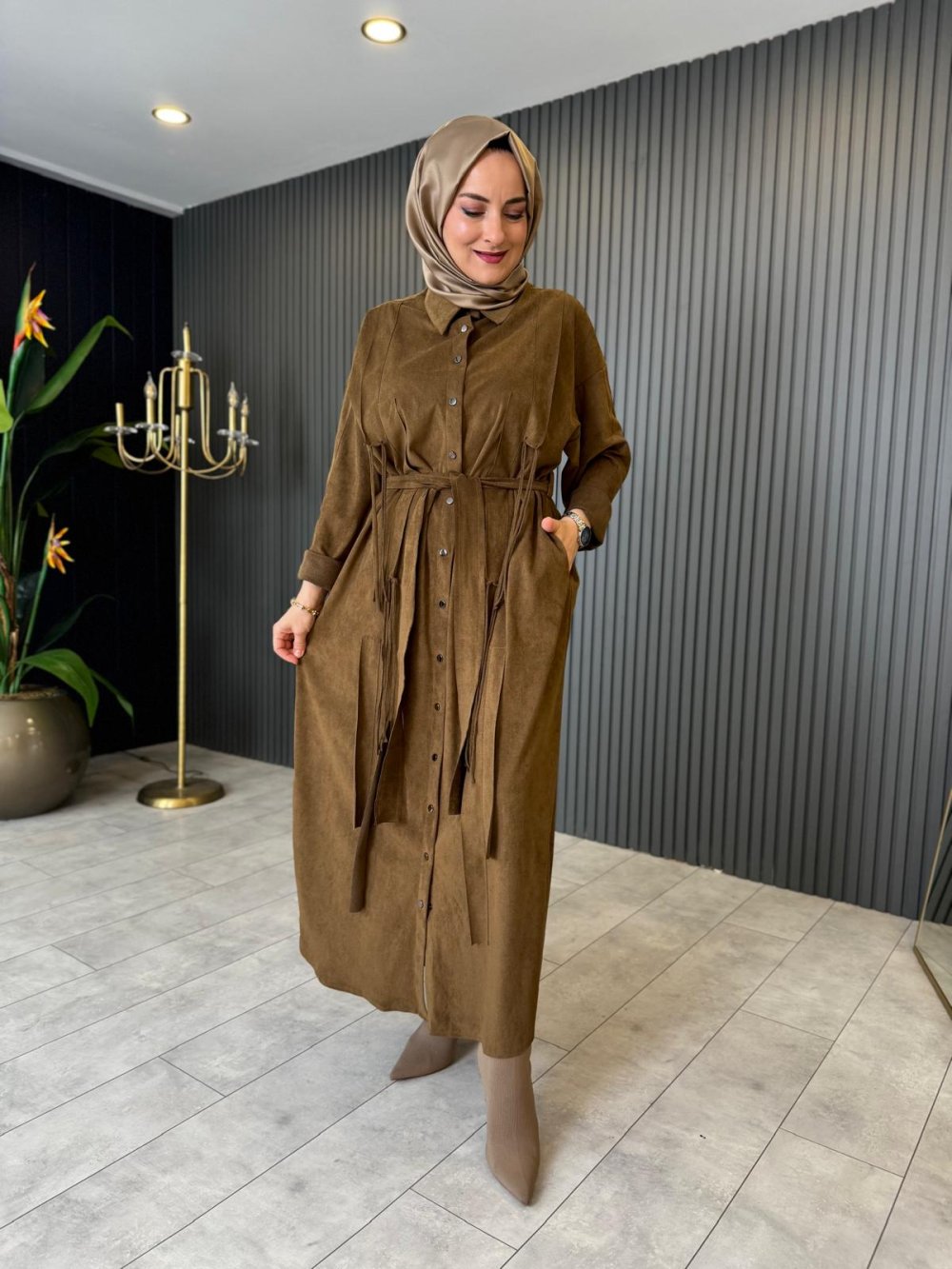 Süet Gömlek Elbise