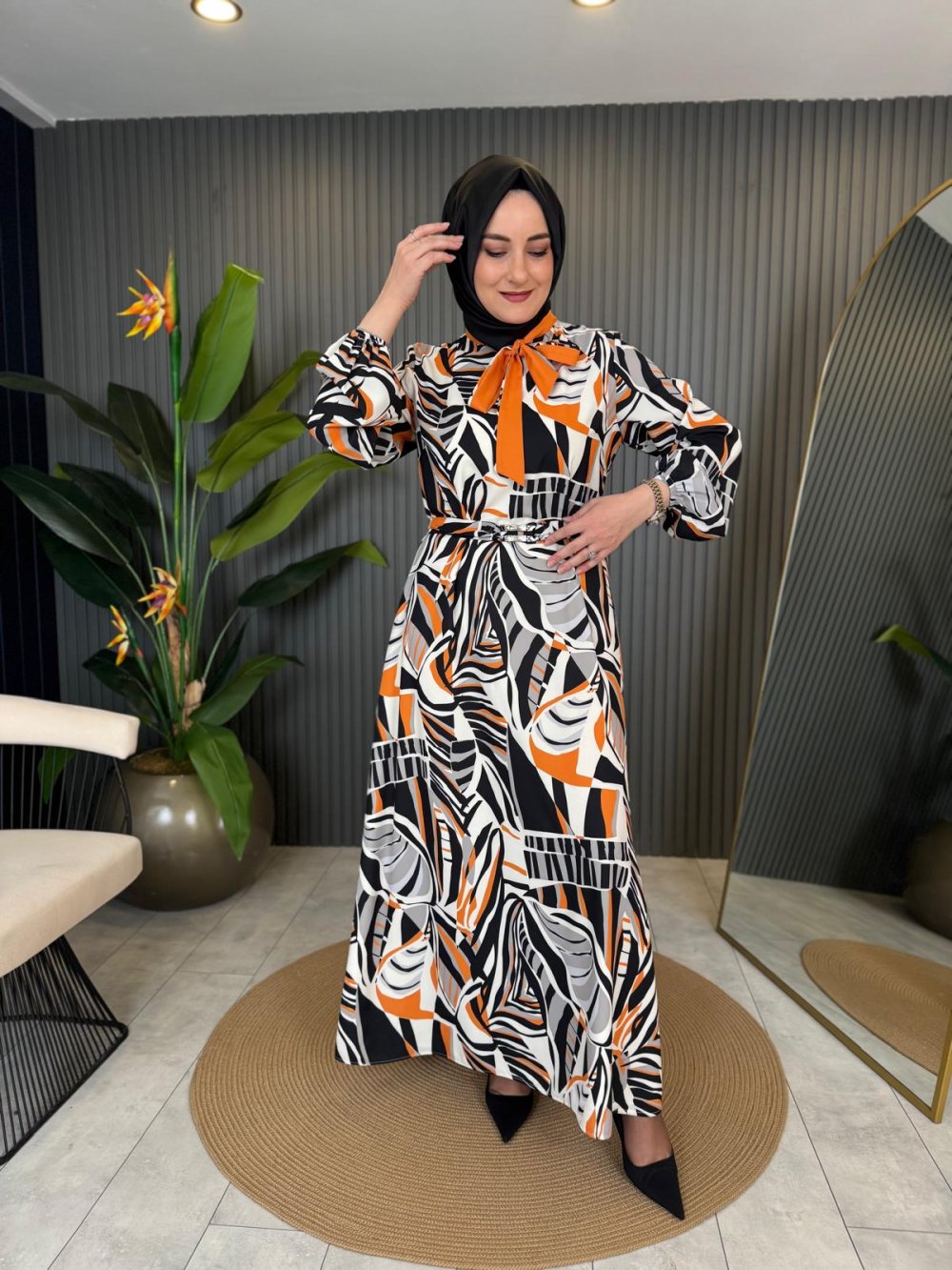 #Orhan Taş Detaylı Kemerli Elbise