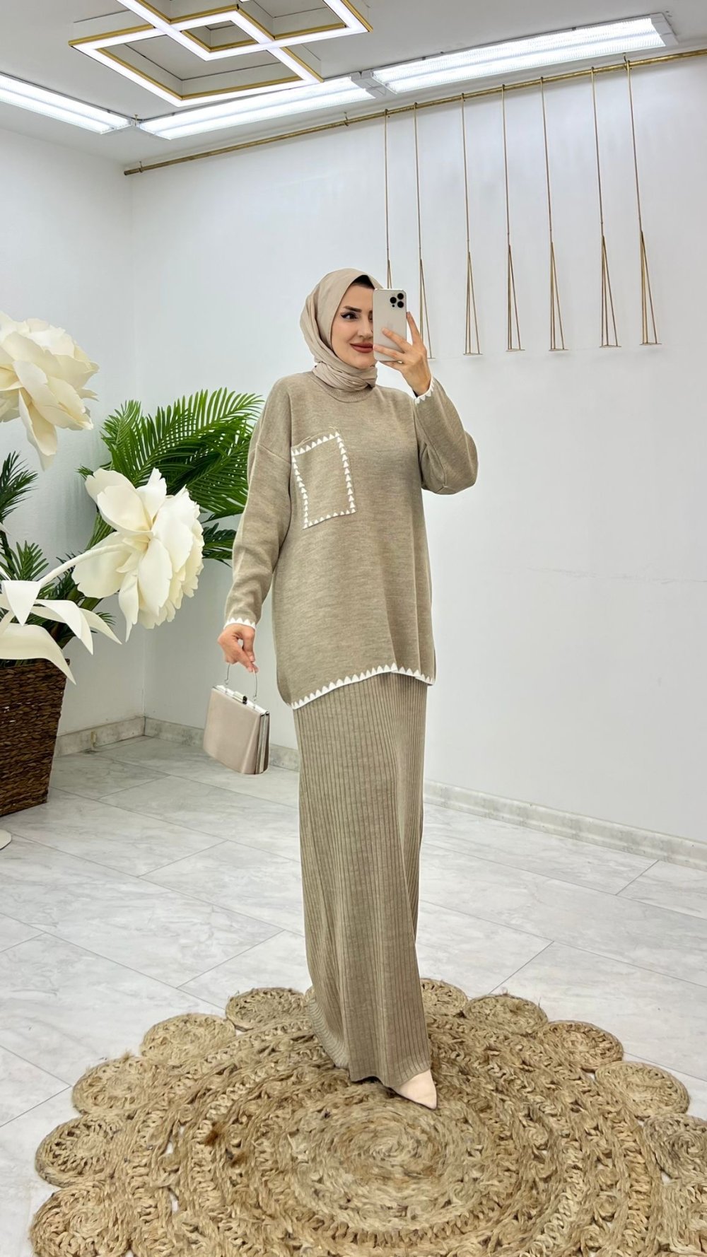 Taş Özüm Triko Elbise Takım Tesettür Giyim