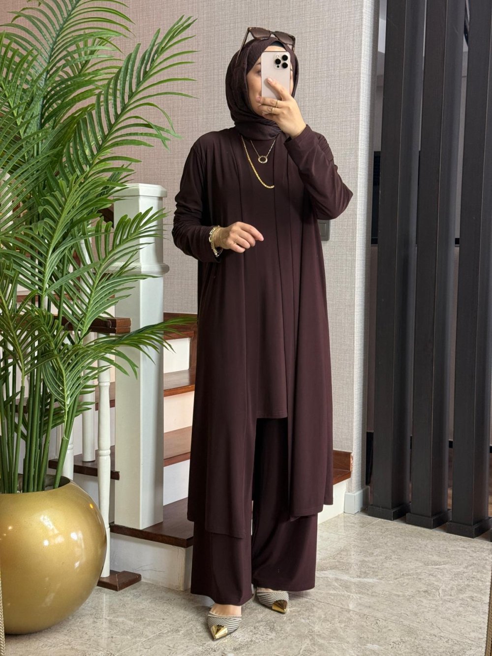 Tilda Kumaş Üçlü Takım Kahverengi