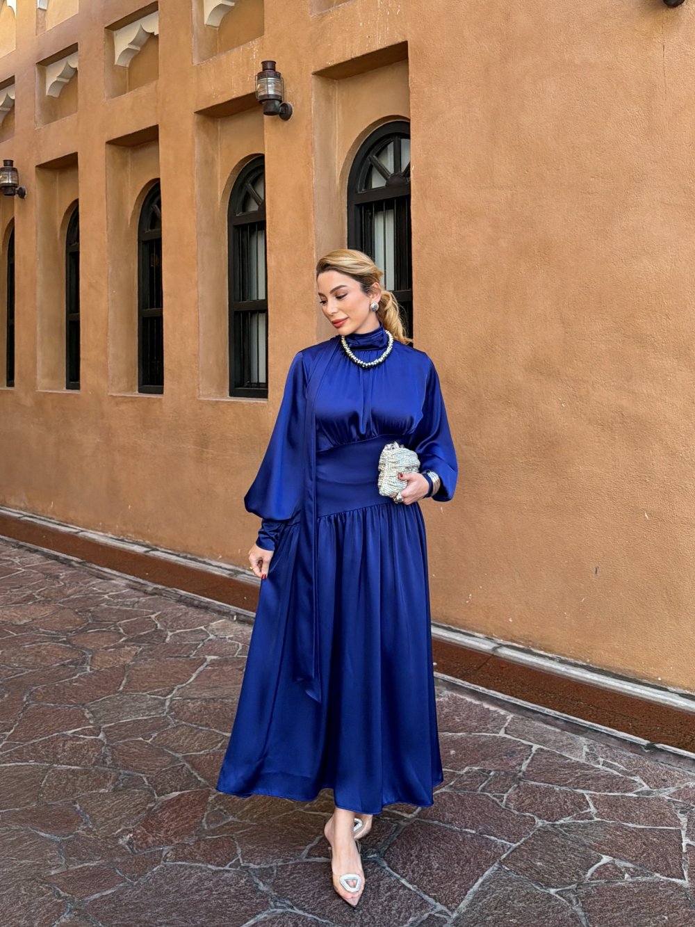 Elbise Yakası Fular Bağlama Detaylıdır.
