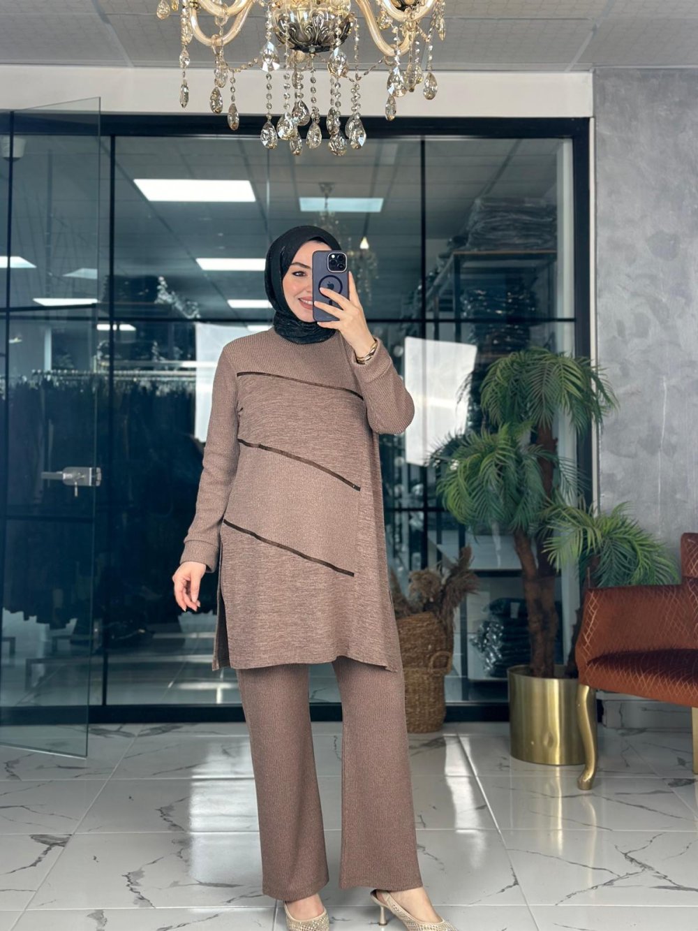 Kumaşı likralı örme kumaştır. Pantolon beli lastiklidir.