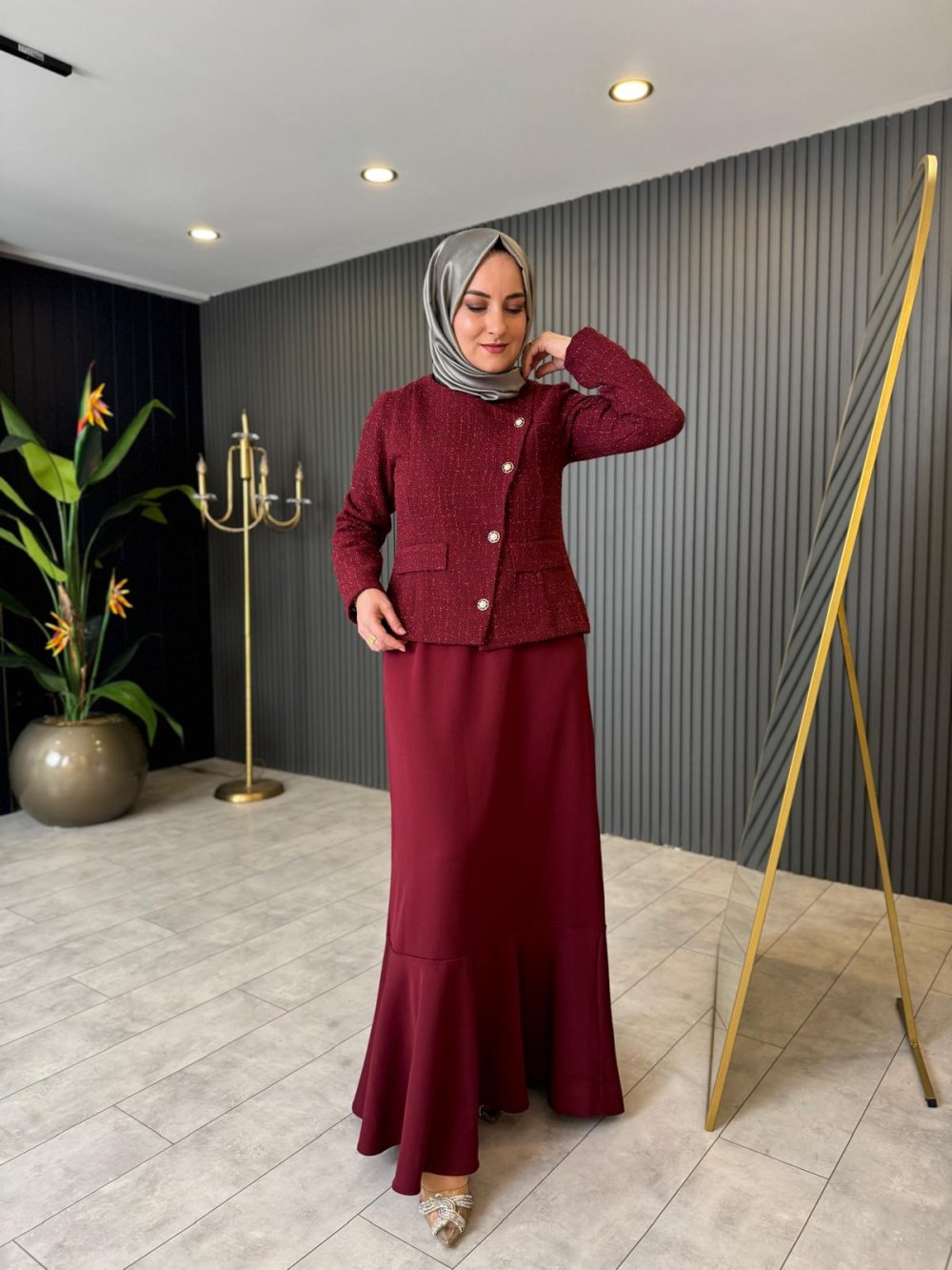 — Elbise kumlu krep, ceket tüvit Kumaştır