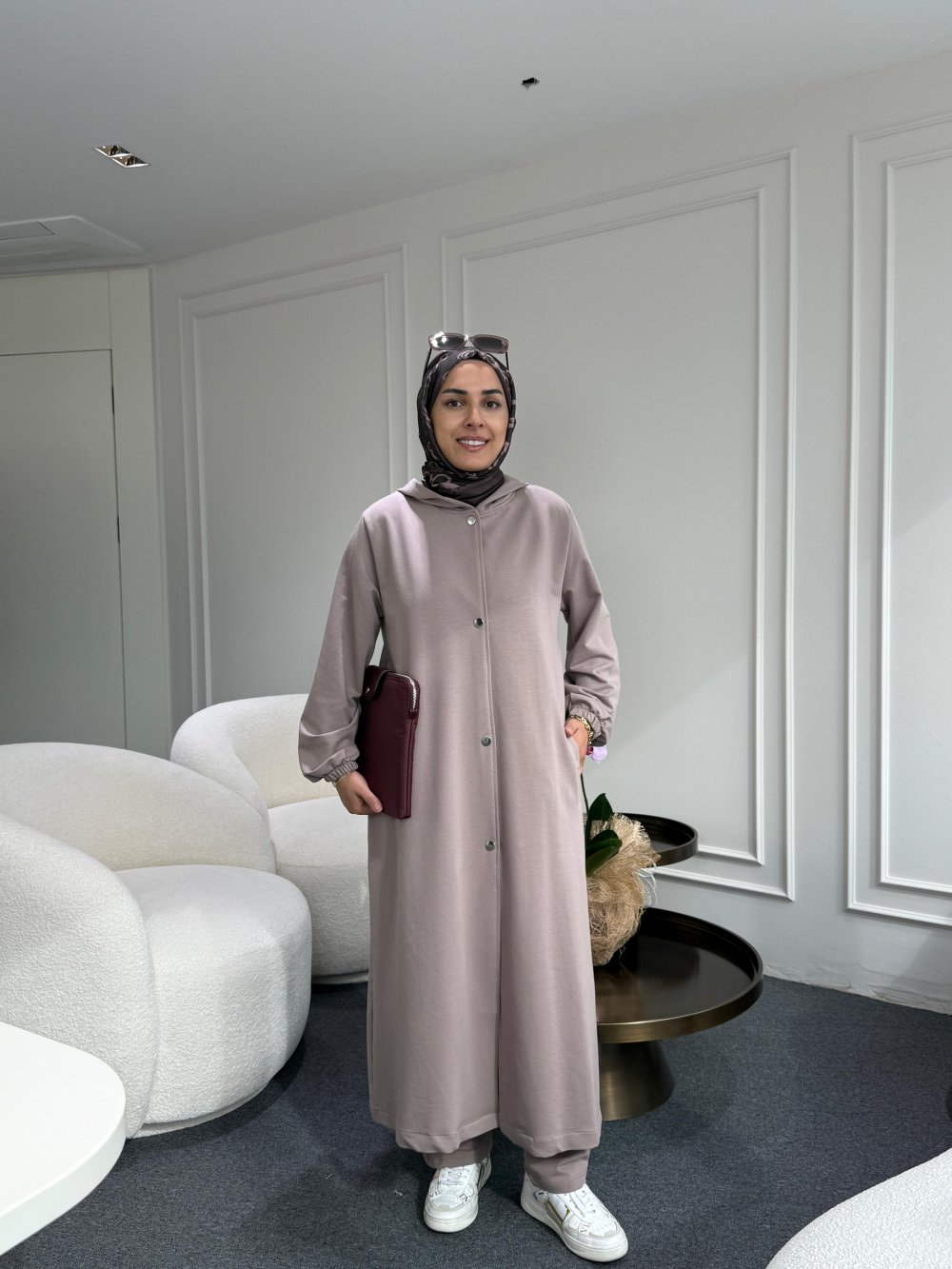 Uzun Kapüşonlu İkiiplik Takım Vizon