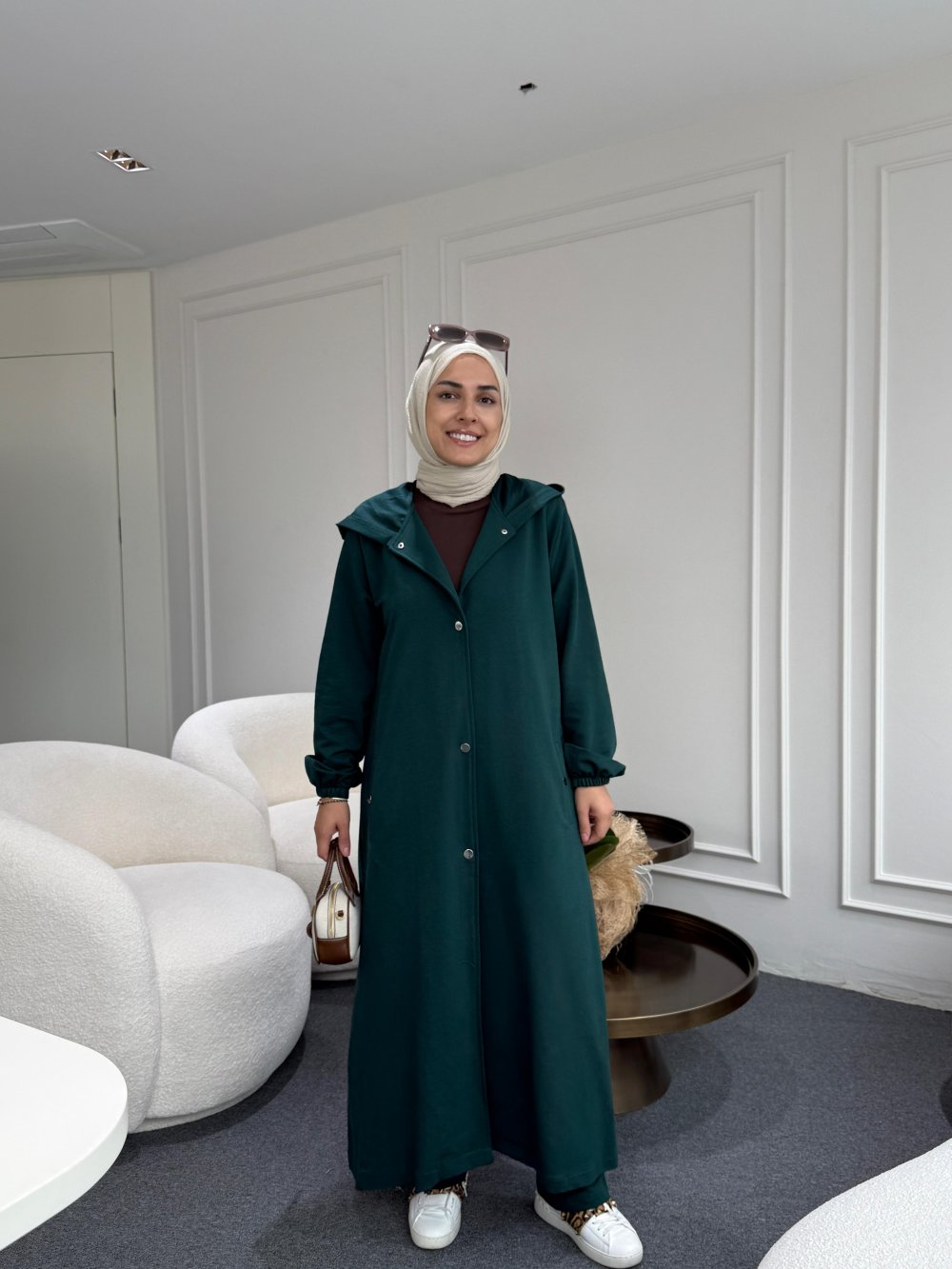 Uzun Kapüşonlu İkiiplik Takım Zümrüt