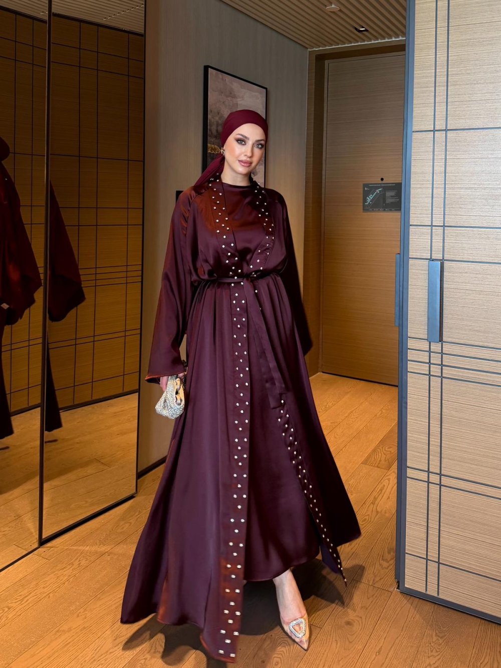 Üst Elbise Yakasından Taş Detaylı ve Kemerlidir