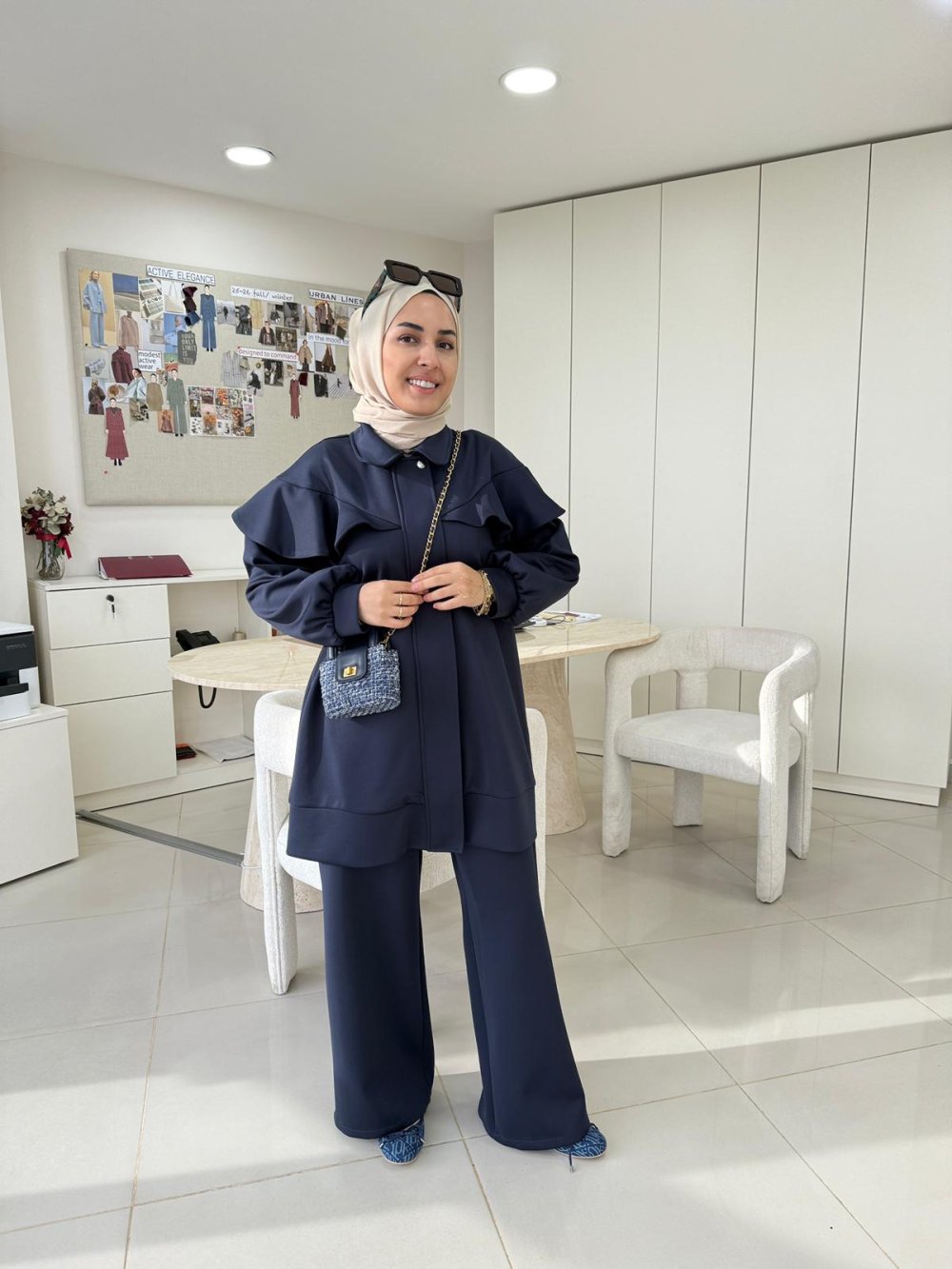Tunik boy 85 cm’dir. Önden fermuarlı ve çıtçıt detayı mevcuttur.