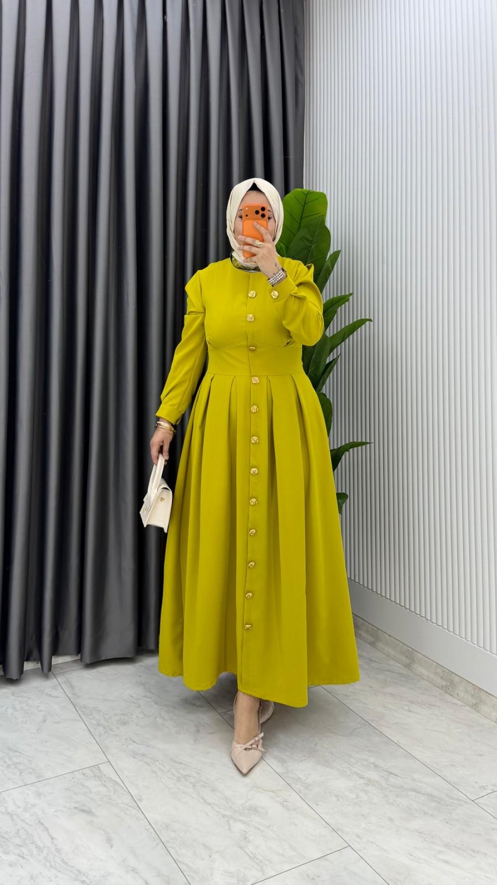 Yağ Yeşil Premium Asel Elbise Tesettür Giyim