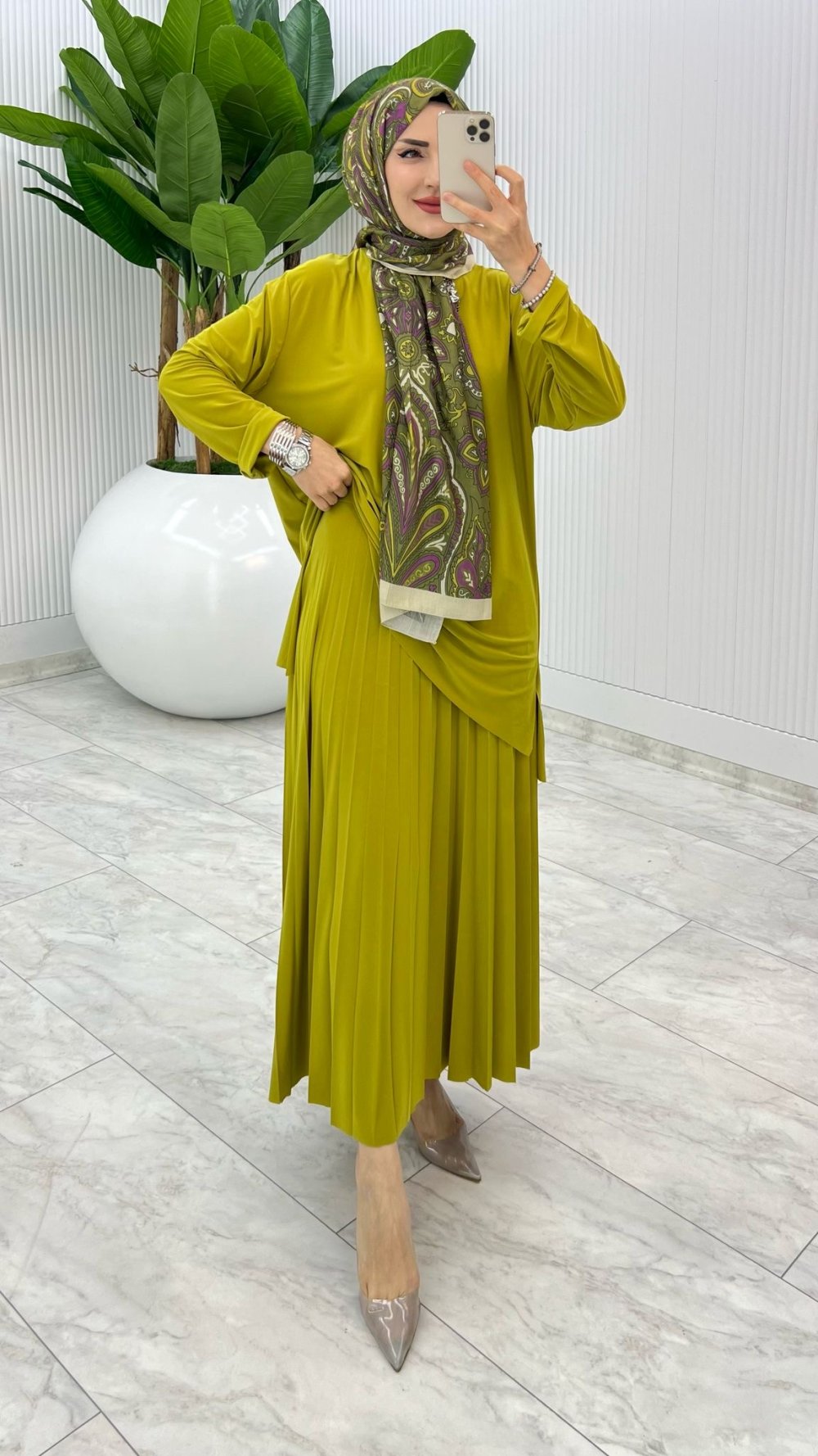 Yağ Yeşil Şermin Etek Takım Tesettür Giyim