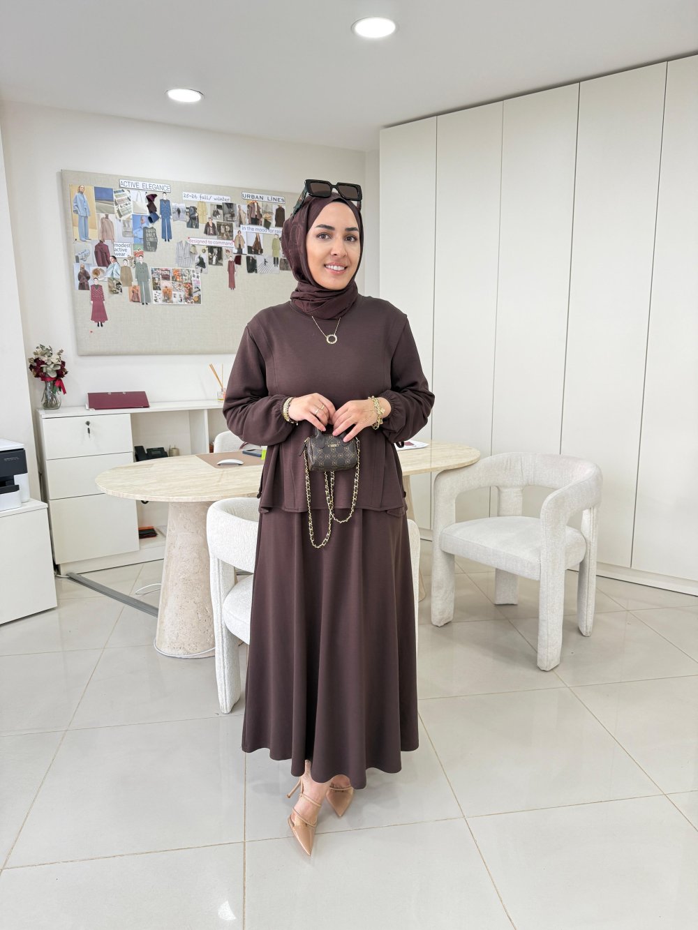 Yandan Büzgülü Oysho Etekli Takım Kahverengi