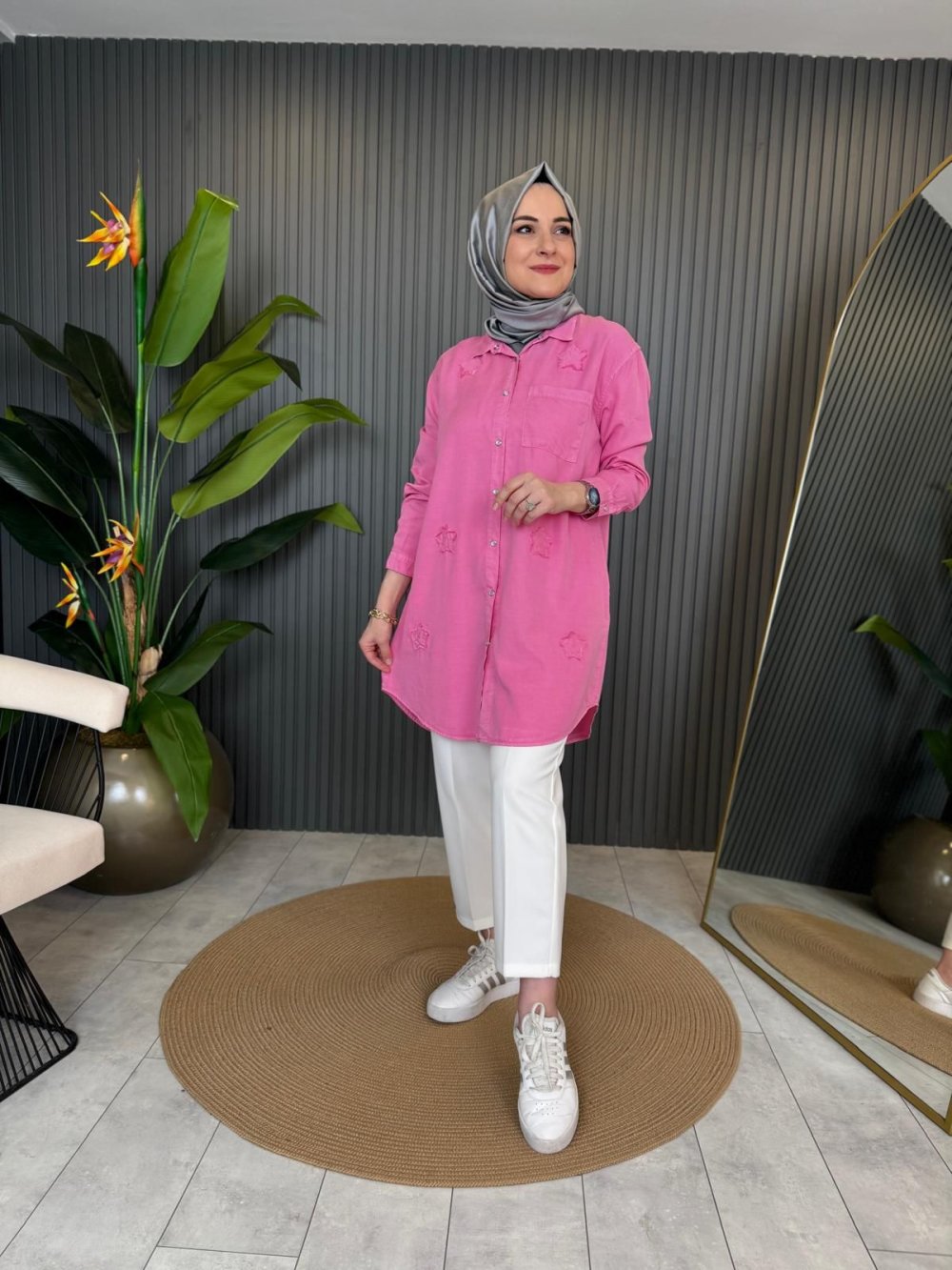 Yıldız İşlemeli Tencel Gömlek